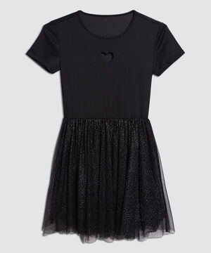 - Vestido Manga Corta Para Niña, Silueta Amplia, Diseño De La Falda Tipo Tutu En Lurex, Camiseta Acanalada Con Cut Out En Forma De Corazón Y Cuello Redondo, Una Prenda Divertida Y Relajada Que Puedes Combinar Con Tenis O Zapatillas Para Un Look Diferentes Para Tus Hijas. Hecho En Poliéster Y Elastano. ¡Haz Ahora Tu Pedido!